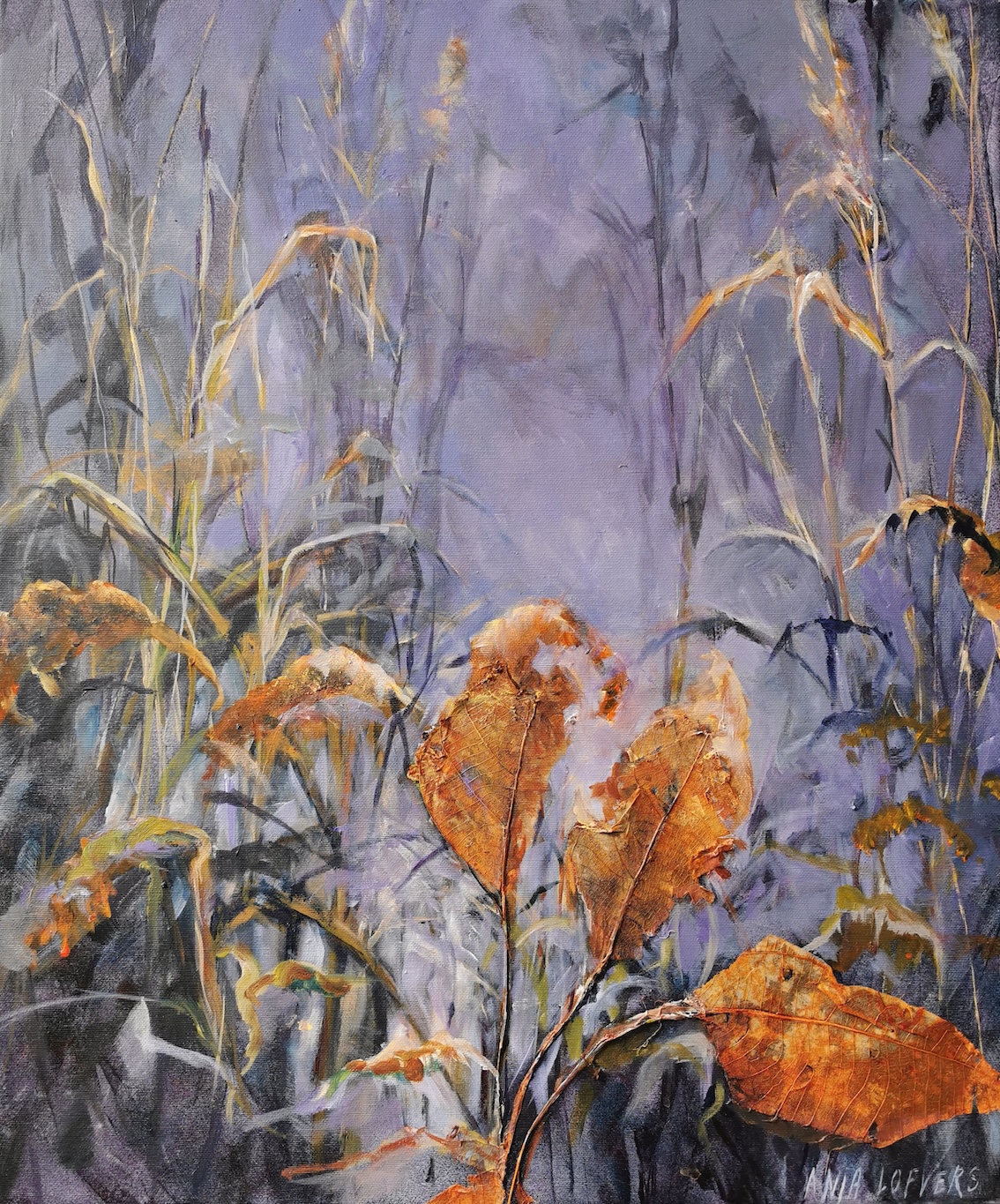 Anja schildert in acryl op doek in natuurlijke vormen en verstilde ruige landschappen. Dit zijn belangrijke thema’s in haar werk. Zij verwerkt natuurlijk materiaal in haar schilderijen zoals gras, blad en vezels.