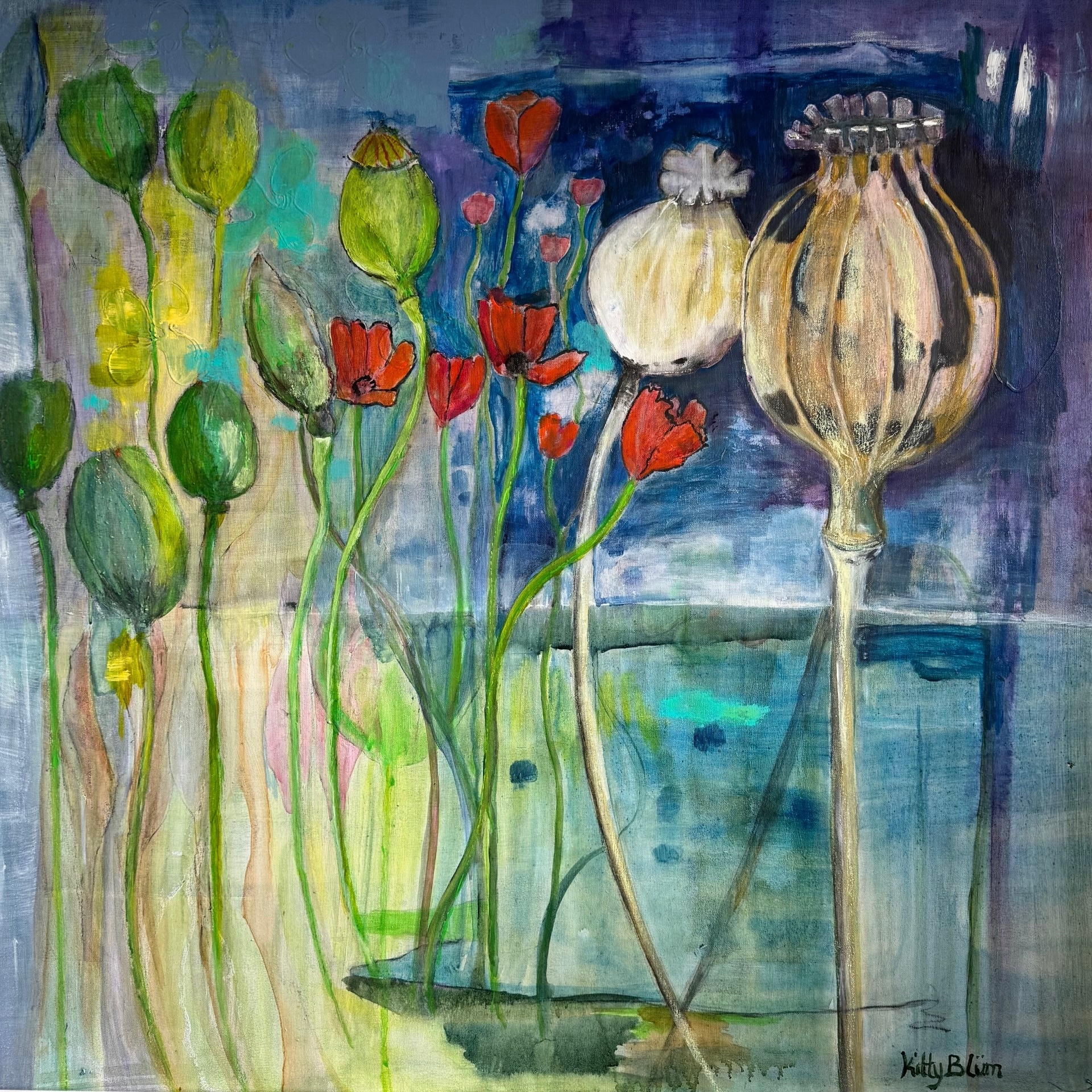 Als je kijkt voel je de rustige ademhaling van de natuur en verdwijn je in het schilderij. De verstilde sfeer probeert zij te vangen, in het kleurrijke abstracte werk en zij haalt haar inspiratie uit reizen. Haar werk is figuratief maar niet per se realistisch.