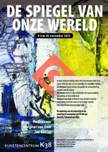 Expositie 'DE SPIEGEL VAN ONZE WERELD' van zaterdag 8 november t/m zondag 30 november. De OPENING is op zaterdag 8 november om 16.00 uur door Ds. Sybrand Van Dijk. Deelnemende kunstenaars zijn: Jan Kenter Els Brouwer Margriet van Dam Jan Kenter toont in zijn schilderijen en tekeningen de rauwe werkelijkheid van oorlogen en menselijk leed. Zijn werk beweegt zich op de spannende grens tussen diepgang en nonchalance, waarin figuratie en abstractie elkaar ontmoeten. Door deze combinatie ontstaat een authentiek…